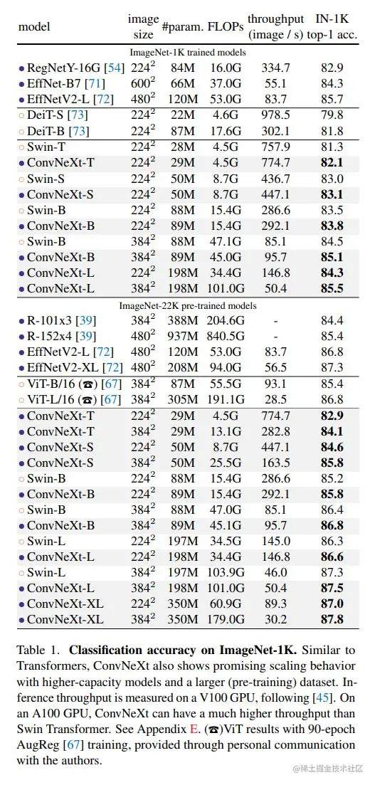 MetaAI在论文A ConvNet for the 2020s中, 从ResNet出发并借鉴Swin Transformer提出了一种新的 CNN 模型:ConvNeXt,其效果无论在图像分类还是检测分割任务上均能超过Swin Transformer,而且ConvNeXt和vision transformer一样具有类似的scalability(随着数据量和模型大小增加,性能同比提升)。