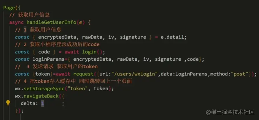 • 先获取用户登录成功后的 token 值 -- 调用后端接口 前四个参数通过 button 的 open-type 中获取, 最后一个通过 wx.login 获取,跳转页面,点击按钮获取想要信息