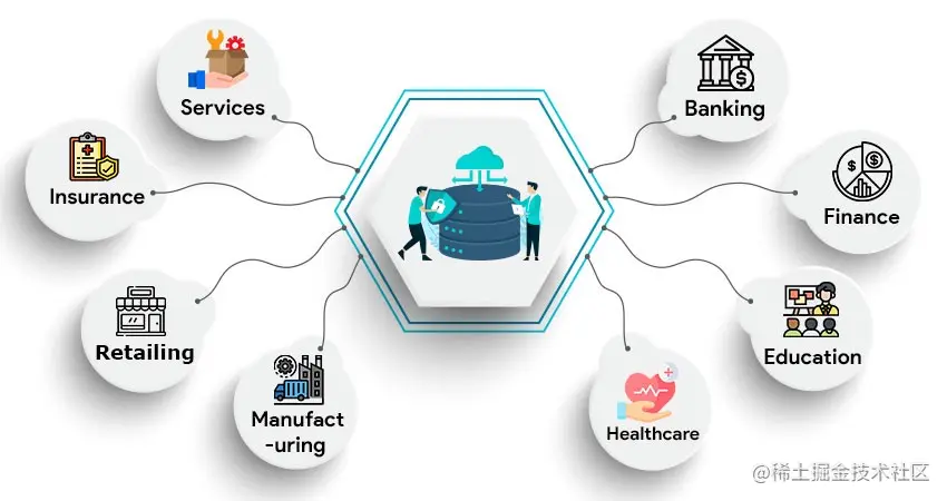 - 数据仓库被用于不同的行业,如航空、银行、医疗保健、保险、零售等。