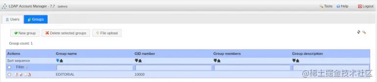 图片。Jack Wallen/TechRepublic.组 "选项卡允许你创建和管理你的LDAP组。