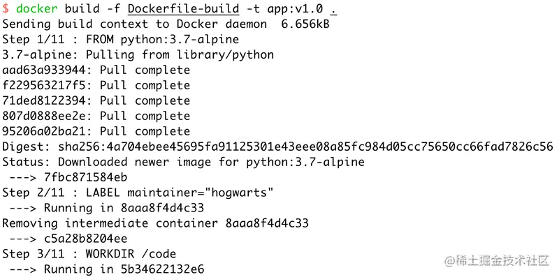 镜像构建完成后,就可以使用新镜像提供服务啦。可以使用 docker images | grep app 来查看生成的镜像。\