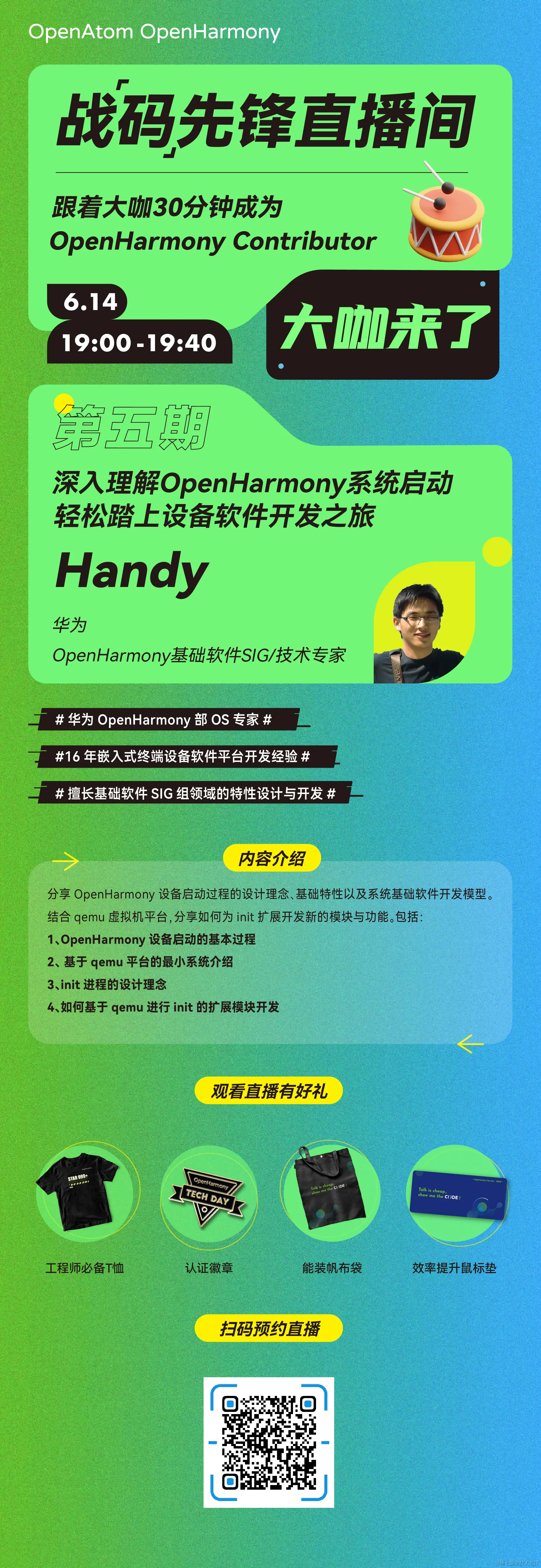 本期直播我们邀请到了华为OpenHarmony部OS专家,OpenHarmony基础软件SIG/技术专家Handy老师,给大家分享《深入理解OpenHarmony系统启动,轻松踏上设备软件开发之旅》。