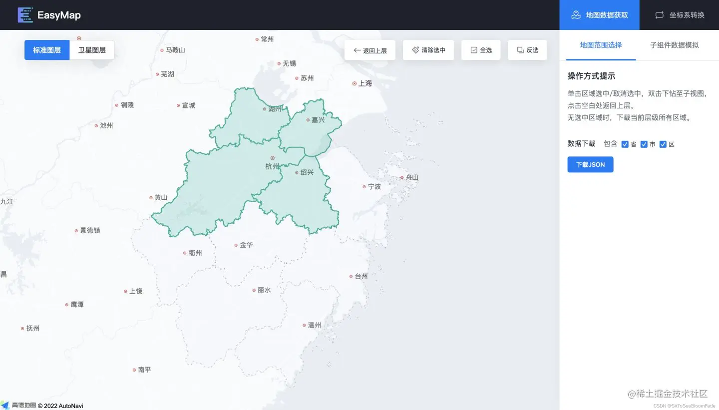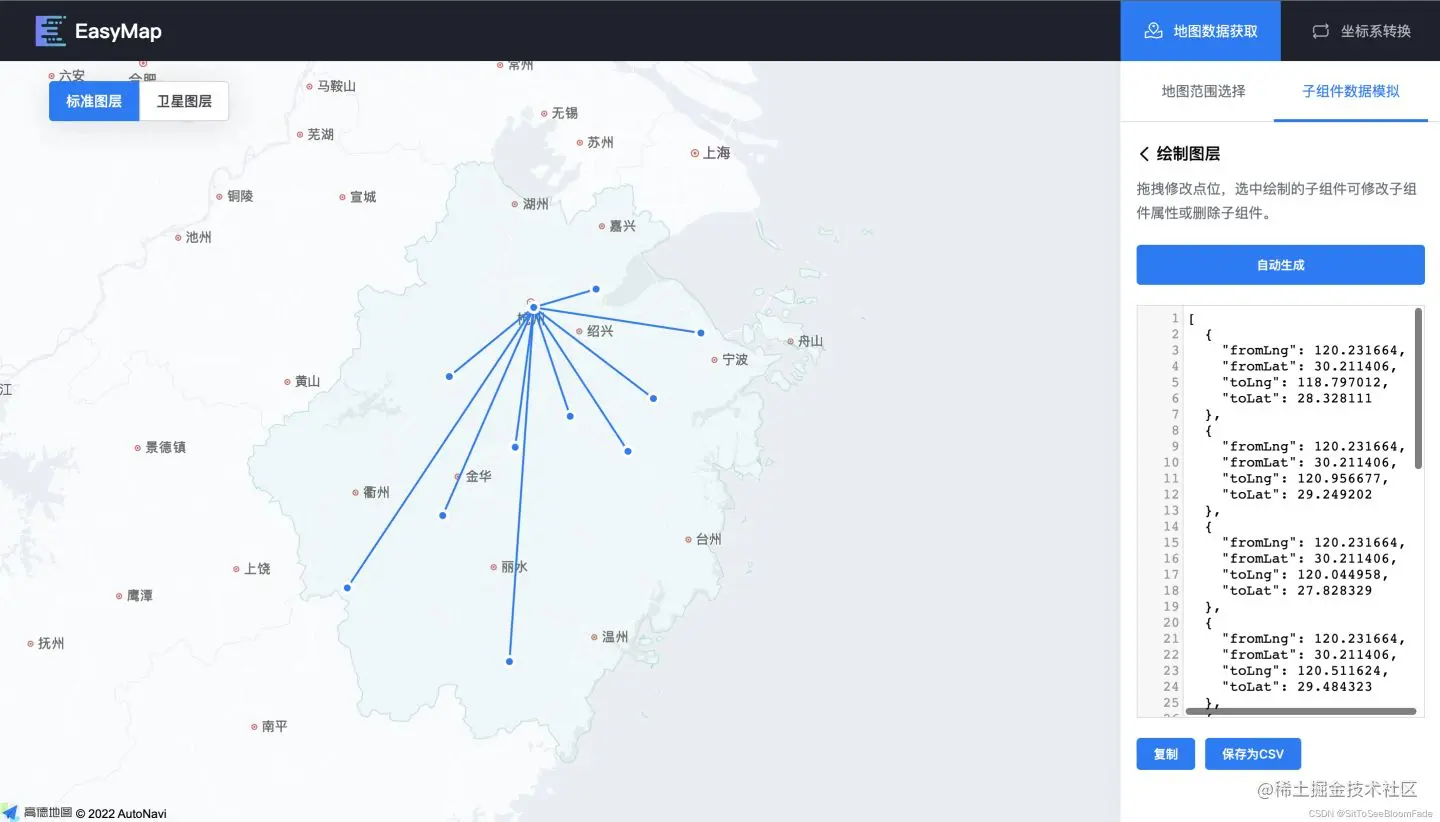 这个工具也还可以获取行政边界数据、地图数据模拟