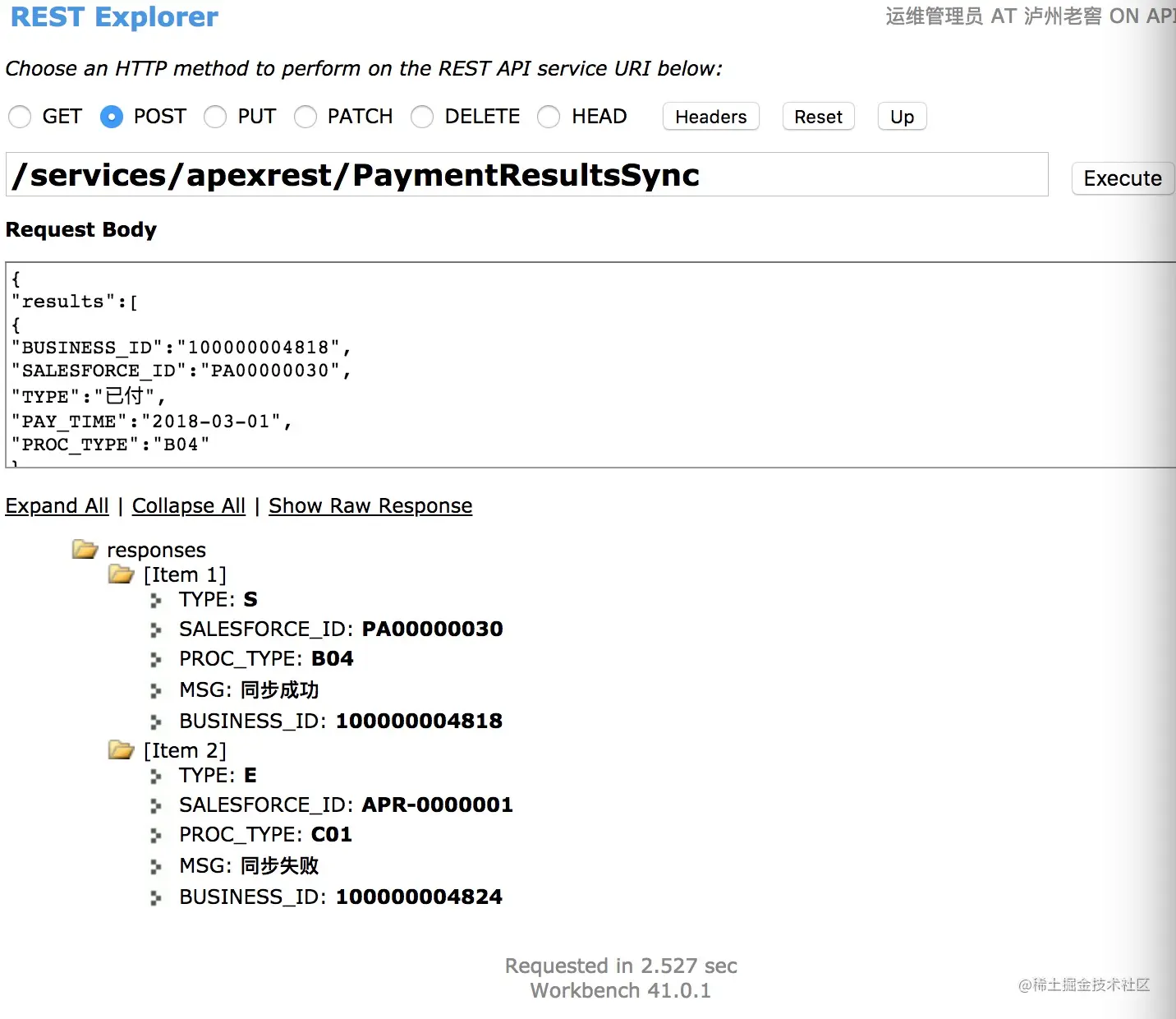- 使用workbench调试第2种接口截图: