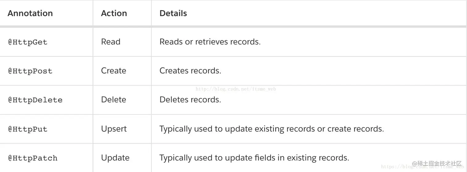 作为PUT方法的替代者,可以使用PATCH方法来更新记录。你可以用不同的方式实施PATCH方法。一种方法就是在方法里为每一个要更新的字段定义参数。例如,你可以定义一个只更新priority字段的方法:updateCasePriority(String priority)。可以列出多个参数来更新多个字段。