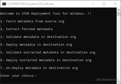 基本介绍:我们在设定好source org, destination org等相关配置信息后(包括package的构建),只需要输入相应的数字1-7,就能实现元数据部署相关的操作。