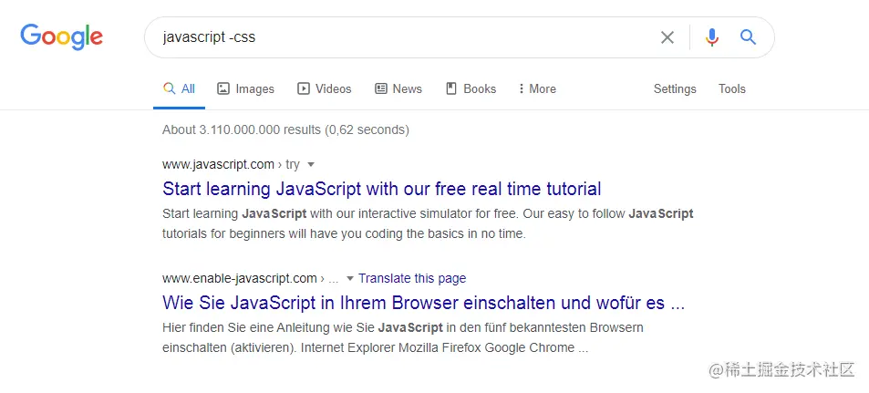 技巧4:The "-" operator will exclude results that contain a term or phrase