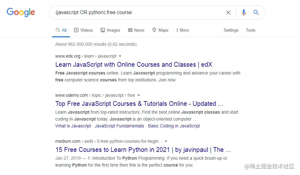 技巧3:You can use the OR operator to get the results related to one of the search terms