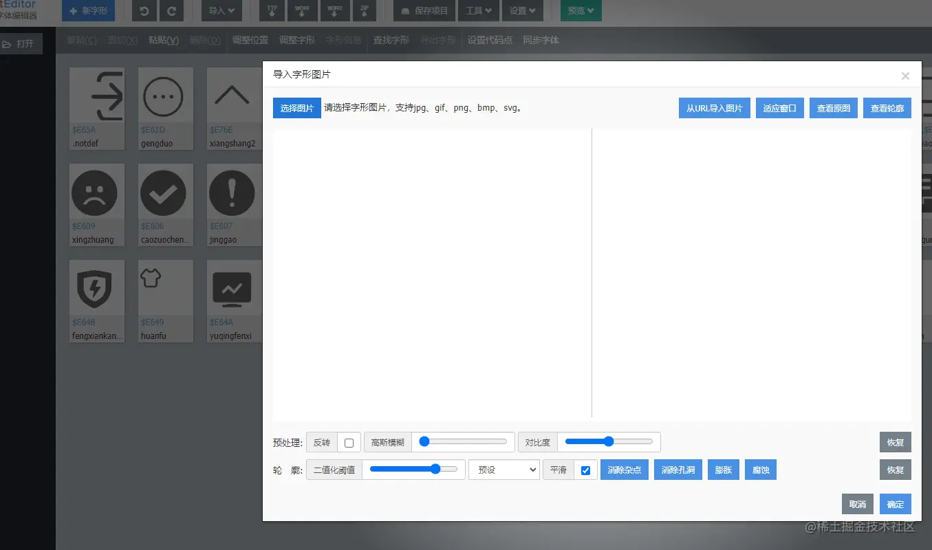 第一步,使用在线字体编辑器打开当前项目中的iconfont字体文件(iconfont.ttf)