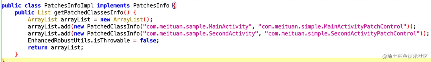 adb push /Users/chenhmr/Documents/Robust/app/build/outputs/robust/patch.jar /storage/emulated/0/Android/data/com.meituan.robust.sample/cache/robust/patch.jar6、调用new PatchExecutor(getApplicationContext(), new PatchManipulateImp(), new RobustCallBackSample()).start();进行热修复