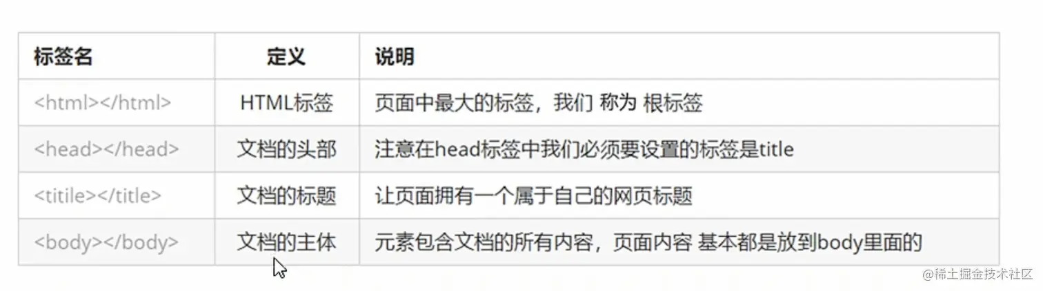 <!-- 用于定义表格的标签 -->