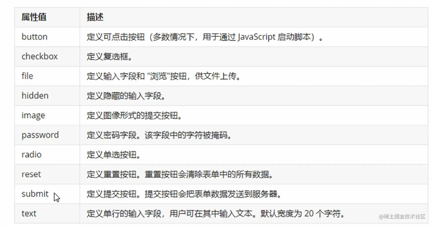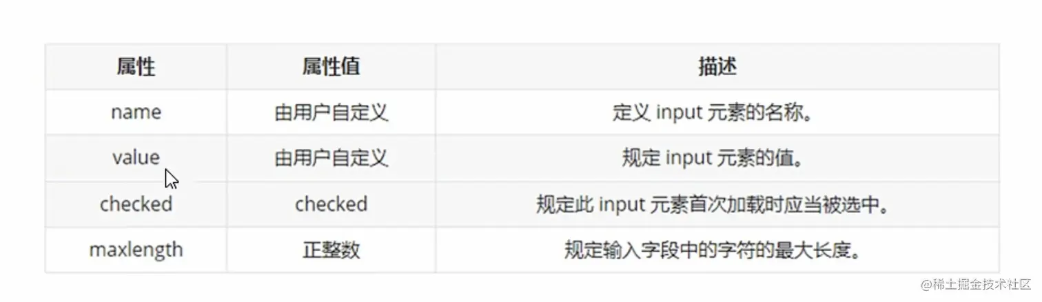(1) input:输入表单元素 <input type="属性值"/>
