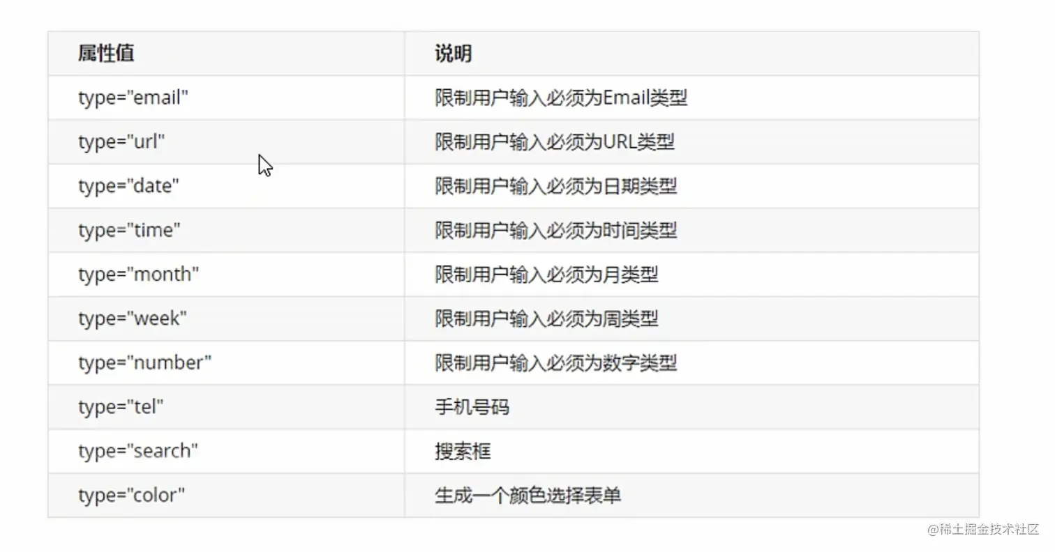 HTML5新增类型: