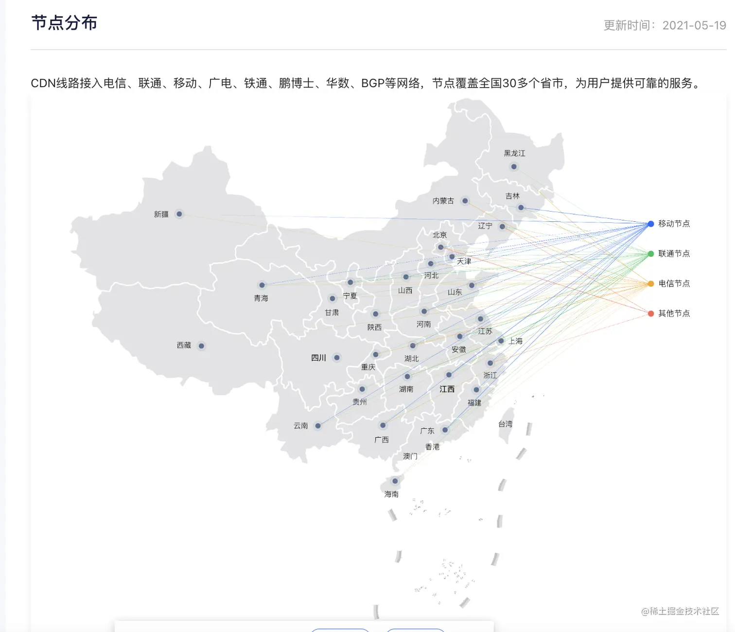 比如某云的国内 CDN 节点分布是这样的:
