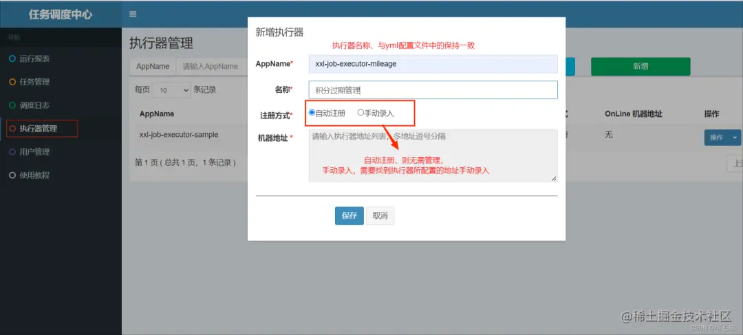 xxl: job: admin: # 调度中心部署跟地址 [选填]:如调度中心集群部署存在多个地址则用逗号分隔。 # 执行器将会使用该地址进行"执行器心跳注册"和"任务结果回调";为空则关闭自动注册; addresses: http://127.0.0.1:8086/xxl-job-admin # 执行器通讯TOKEN [选填]:非空时启用; accessToken: executor: # 执行器AppName [选填]:执行器心跳注册分组依据;为空则关闭自动注册 appname: xxl-job-executor-mileage # 执行器注册 [选填]:优先使用该配置作为注册地址,为空时使用内嵌服务 ”IP:PORT“ 作为注册地址。 #从而更灵活的支持容器类型执行器动态IP和动态映射端口问题。 address: # 执行器IP [选填]:默认为空表示自动获取IP,多网卡时可手动设置指定IP,该IP不会绑定Host仅作为通讯实用; # 地址信息用于 "执行器注册" 和 "调度中心请求并触发任务"; ip: # 执行器端口号 [选填]:小于等于0则自动获取;默认端口为9999,单机部署多个执行器时,注意要配置不同执行器端口; port: 8088 # 执行器运行日志文件存储磁盘路径 [选填] :需要对该路径拥有读写权限;为空则使用默认路径; logpath: /data/applogs/xxl-job/jobhandler # 执行器日志文件保存天数 [选填] : 过期日志自动清理, 限制值大于等于3时生效; 否则, 如-1, 关闭自动清理功能; logretentiondays: 30logging: config: classpath:logback.xml