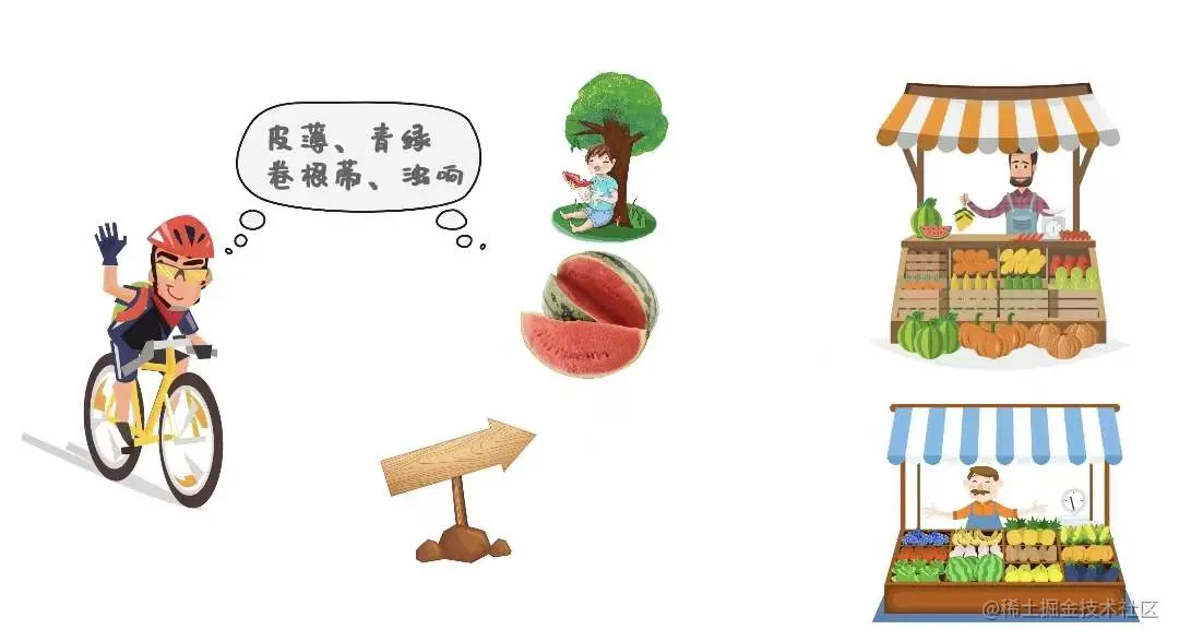 举个例子:选西瓜过程中,经验丰富的小明对比不同种类西瓜的纹路、瓜蒂、敲击声、尺寸和种类等特征,快速挑选出想要的好瓜。