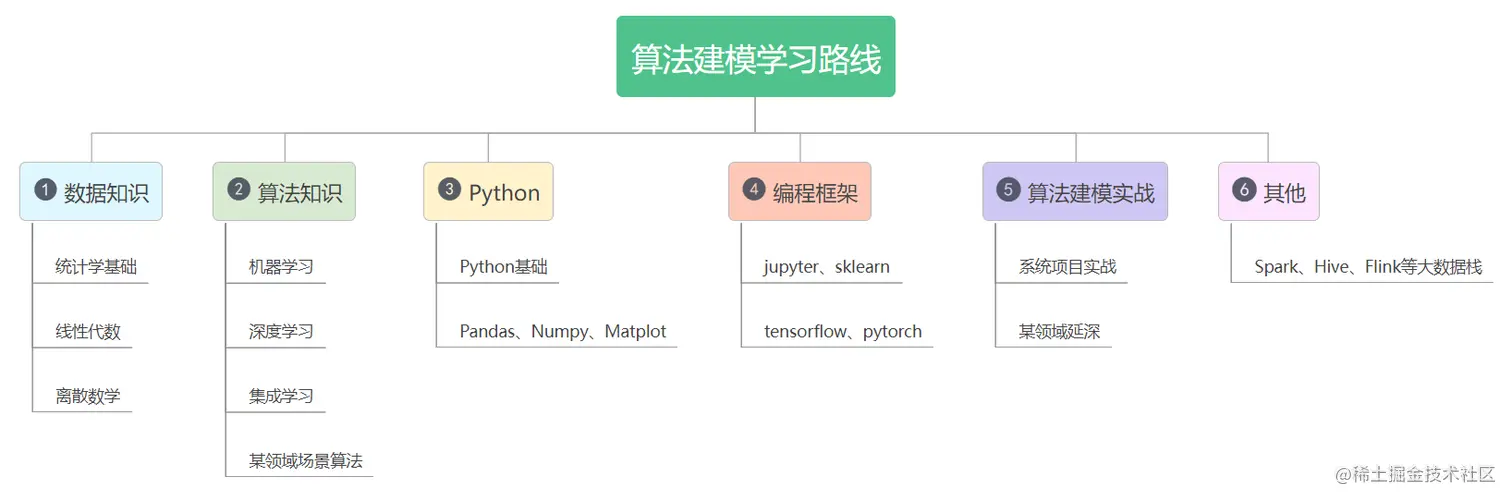 建议先把基础知识打牢,包括算法和数学知识,这样在后面会学的很轻松。 至于python、pandas、pytorch等全是工具组件,比较好入门。一开始不用铺开学习所有算法,建议学习一些常用的,后面根据具体场景实战中学习即可。