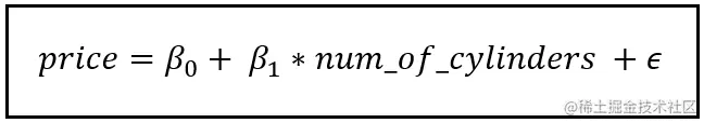 乍一看,num_of_cylinders可能是一个整数估值的变量。一个可能的回归模型,将价格回归到汽缸数上,如下所示。