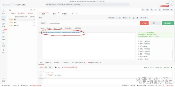 首先我们登录之后会获取一个token,但是token这个值每次登录之后在请求都会改变,这就是一个参数变量.怎么调用这个变量那,apipost用一个预执行脚本和后执行脚本.