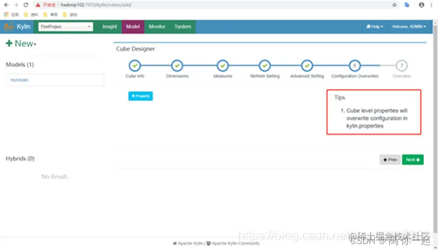 由于每个Cube的并发粒度控制不尽相同,因此建议在Cube Designer 的Configuration Overwrites(上图所示)中为每个Cube量身定制控制并发粒度的参数。假设将把当前Cube的kylin.hbase.region.count.min设置为2,kylin.hbase.region.count.max设置为100。这样无论Segment的大小如何变化,它的分区数量最小都不会低于2,最大都不会超过100。相应地,这个Segment背后的存储引擎(HBase)为了存储这个Segment,也不会使用小于两个或超过100个的分区。我们还调整了默认的kylin.hbase.region.cut,这样50GB的Segment基本上会被分配到50个分区,相比默认设置,我们的Cuboid可能最多会获得5倍的并发量。