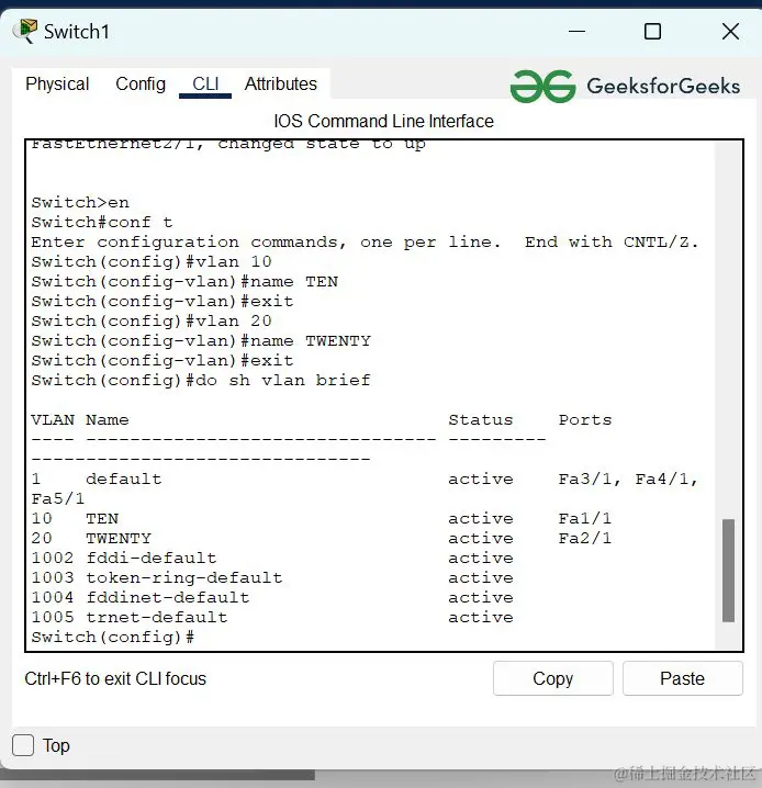 在上面的表述中,我们可以看到,我们已经创建了两个虚拟局域网。我们还没有配置交换机,因此,如果我们尝试从一个主机向另一个主机发送PDU,那么它将响应并发送回复,因为交换机是多播设备。