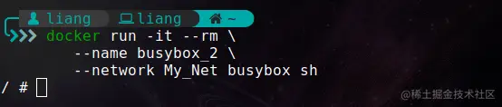 首先,启动或创建一个busybox_1容器并连接到上面创建的My_Netdocker网络,指令如下所示: