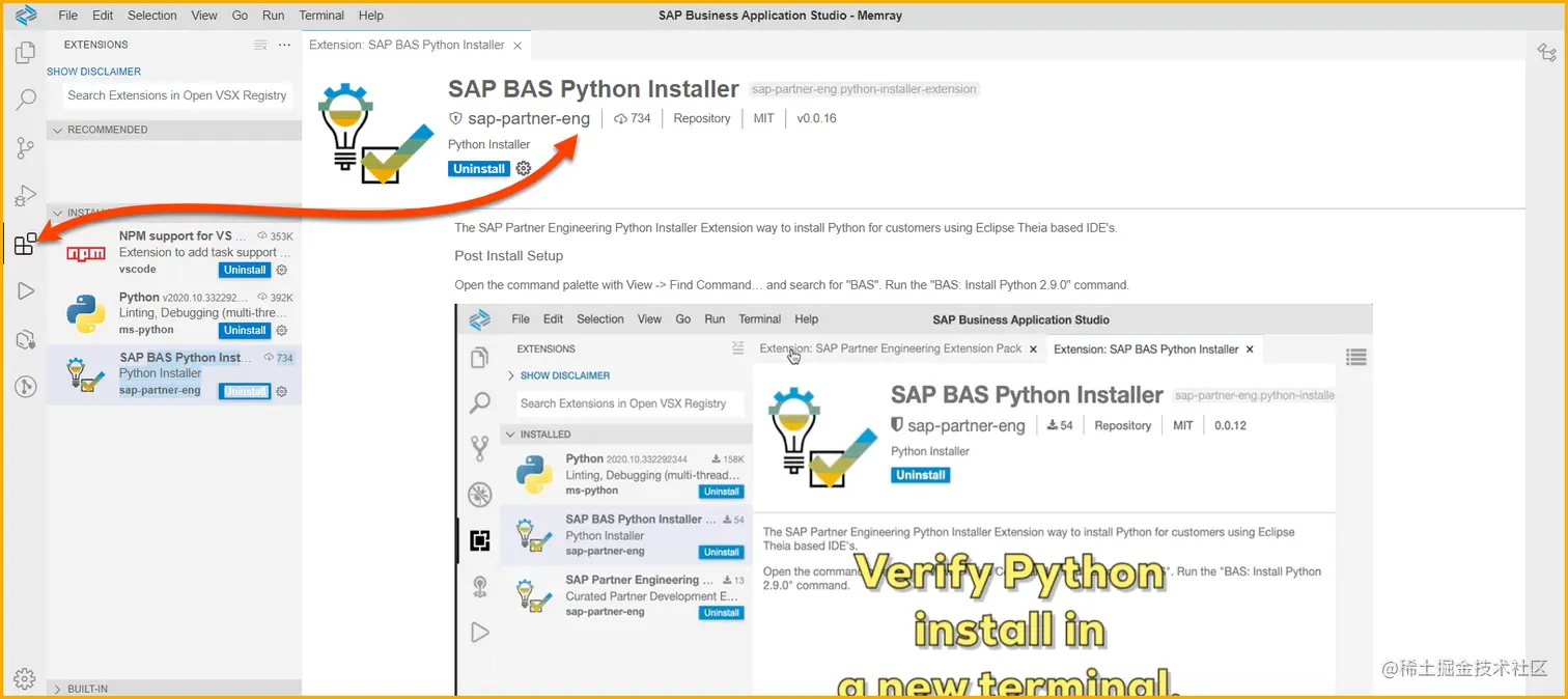 第1步:在Business Application Studio中安装Python和Pip3(如果已经安装,请忽略)。