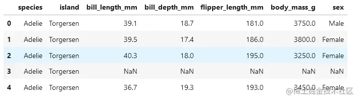 我们从seaborn加载关于不同种类和大小的企鹅的数据集。