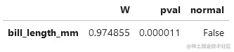 下面是一个对之前实例化的penguins 数据集进行正态性测试的例子。
