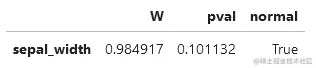 通过软件包pingouin ,我们可以有一个快速的测试输出。例如,函数调用pg.normality(x) ,将给我们提供夏皮罗-威尔克测试的结果,同时自动丢弃缺失值。
