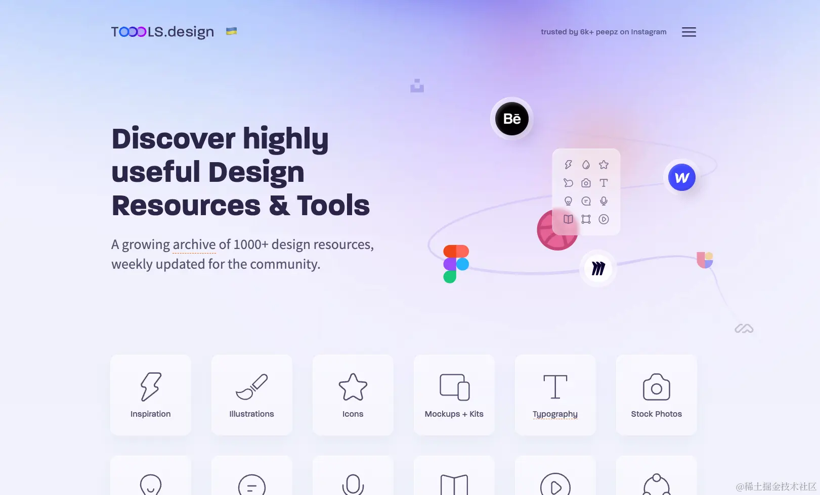 - toools.design - 再次推荐一下这个设计资源导航网站,网站就做的很好看,免费资源很多。付费的资源也非常多,得自己挑。
