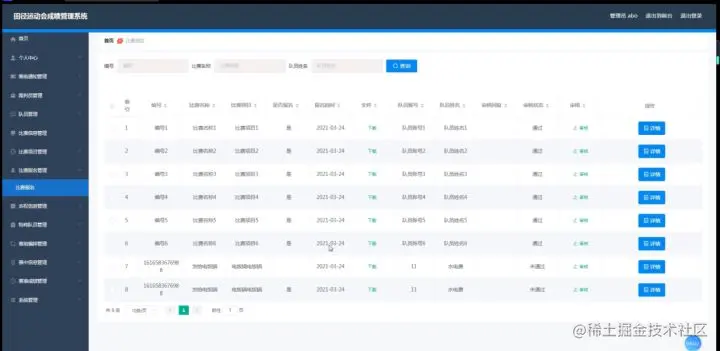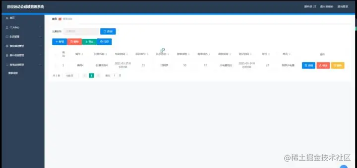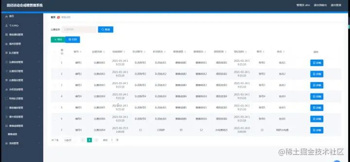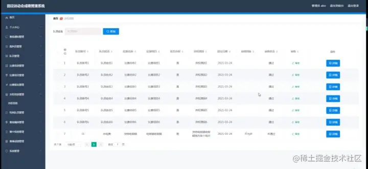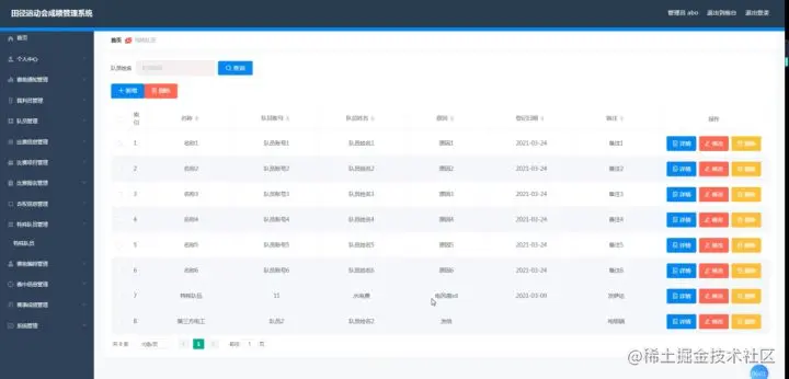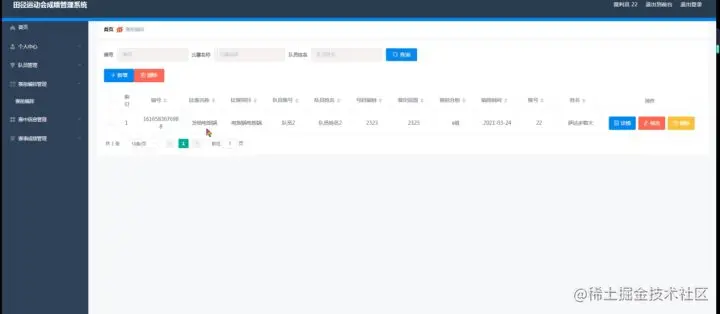 3、功能的完善性:可以管理首页、个人中心、赛前通知管理、裁判员管理、队员管理、比赛信息管理、比赛项目管理、比赛报名管理、弃权信息管理、特殊队员管理、赛前编排管理、赛中信息管理、赛事成绩管理、系统管理模块的修改和维护操作。