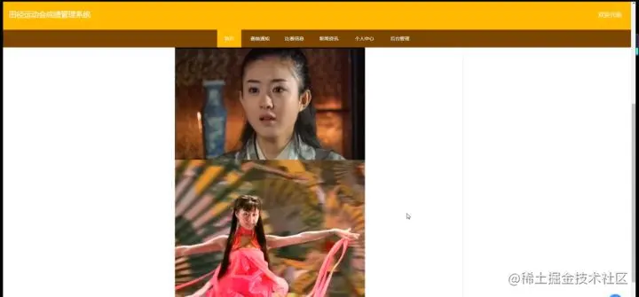 田径运动会成绩管理系统,在系统的首页可以查看首页、赛前通知、比赛信息、新闻资讯、个人中心、后台管理等信息进行详细操作,如图5-1所示。