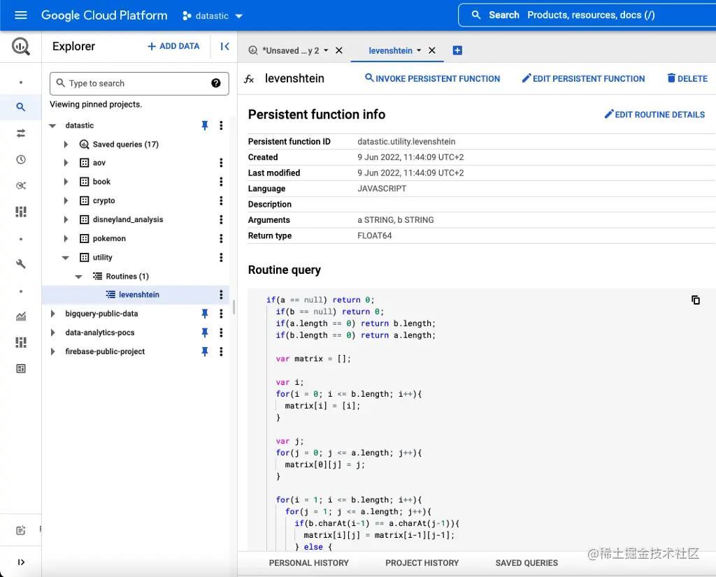 你可以将UDFs定义为**持久性或临时性。**主要区别在于,持久化函数可以被多个查询重复使用和访问(这就像在你的项目中创建一个数据集),而临时函数只对你当前在编辑器中运行的查询有效。