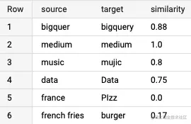 在我们的第一个理论例子中,Bigquer → Bigquery: 字母y被添加,意味着距离为1。我们的函数将首先计算版本数除以输入的最长的字符串,在这种情况下,Bigquery有8个字符(1个添加/8个长度),这就是距离。