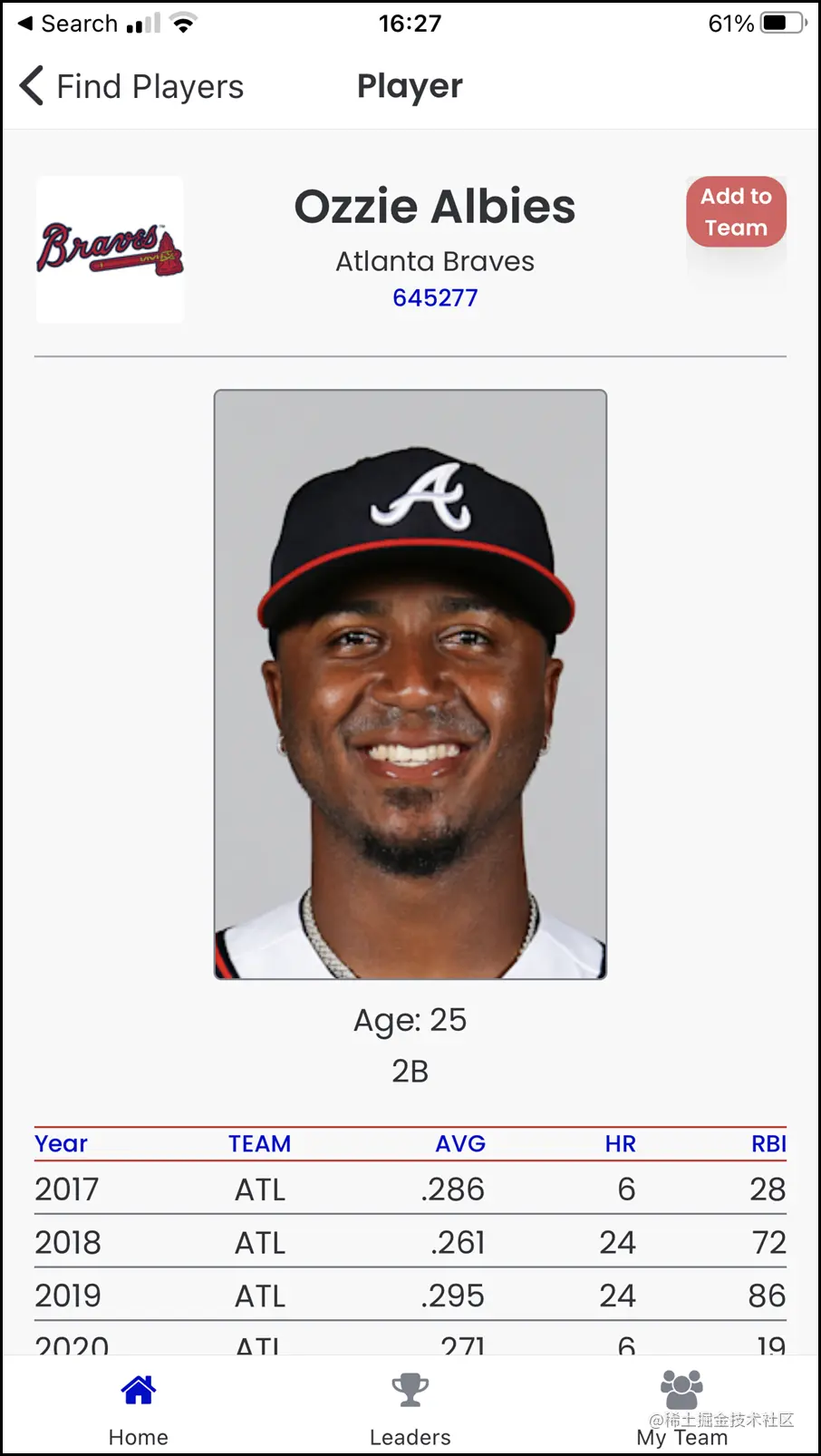 这个应用程序的一个要点是显示我可以连接到一个数据源来拉取信息(我有许多REST数据资源到MLB API),但我也可以使用设备上的本地存储来存储我自己关于球员的相关信息。