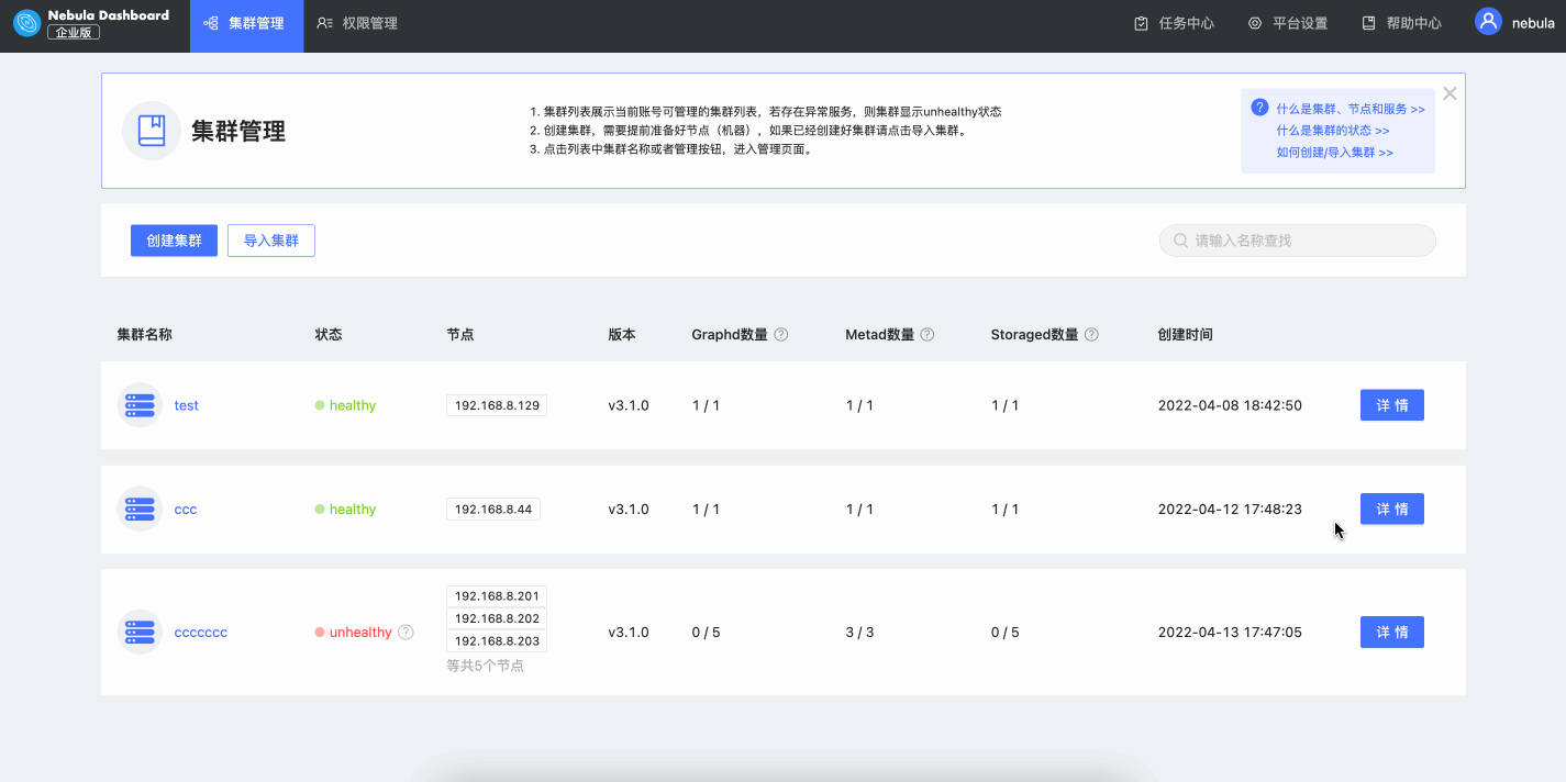 具体来说,因为 Nebula 是一款分布式图数据库,我们提到的可视化更多的是数据可视化。比如,Nebula Dashboard 是一款可视化运维监控产品,在这块的可视化实践不只是图标、动画,更多的是如何把复杂的运维信息通过简单的方式,让用户更容易地 Control 集群。