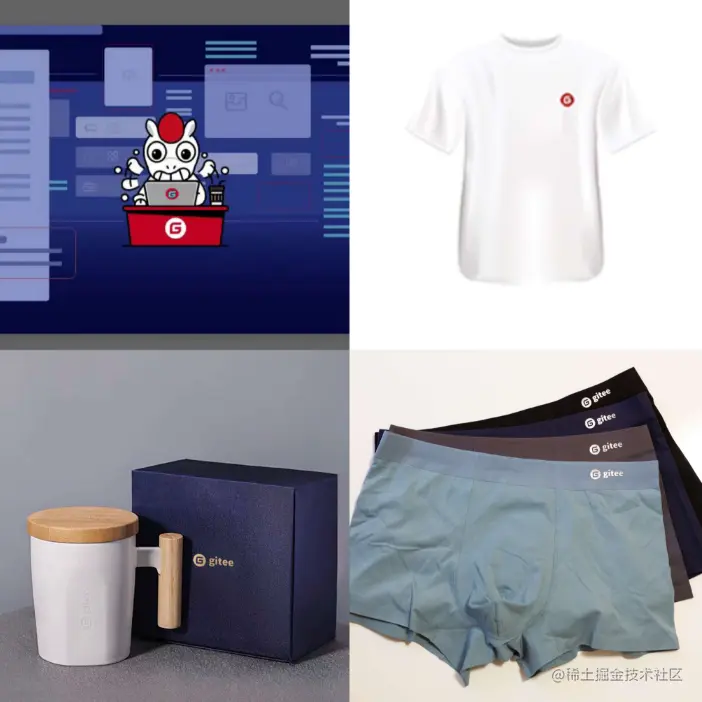 在5月27日-6月30日期间,购买企业版的用户凭订单截图可获 Gitee 全套周边大礼包一份(内含马克杯,T恤,鼠标垫,摄像头遮挡贴,贴纸,马建仓公仔,内裤)!🎉🎉🎉
