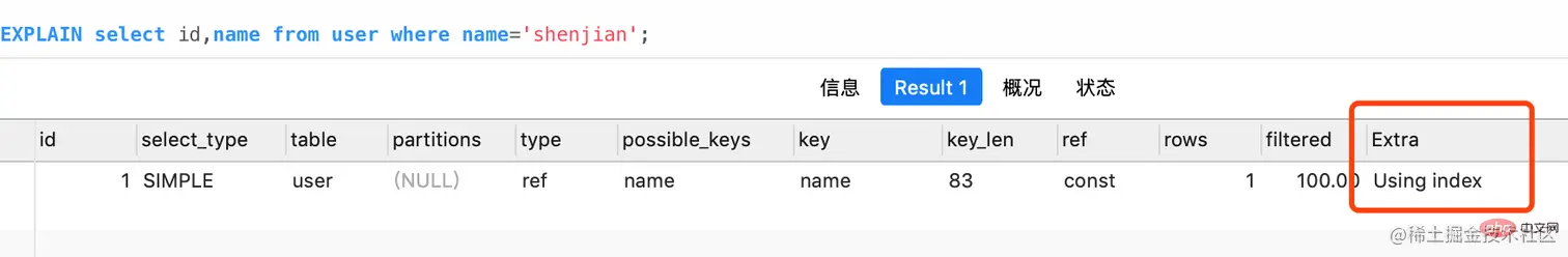 原表为:user(PK id, name, sex);不能利用索引覆盖