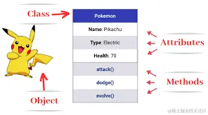 在OOP中,对象是一个类的组成部分或成员。考虑到我们的小精灵例子,每个小精灵都是小精灵类的一个对象。比如说。皮卡丘是口袋妖怪类的一个对象。比如说,丰田就是汽车的一个对象。