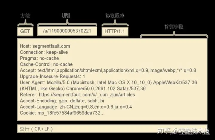 下图是在网上找的一张图,觉得能很好的表达HTTP请求的所发送的数据格式。