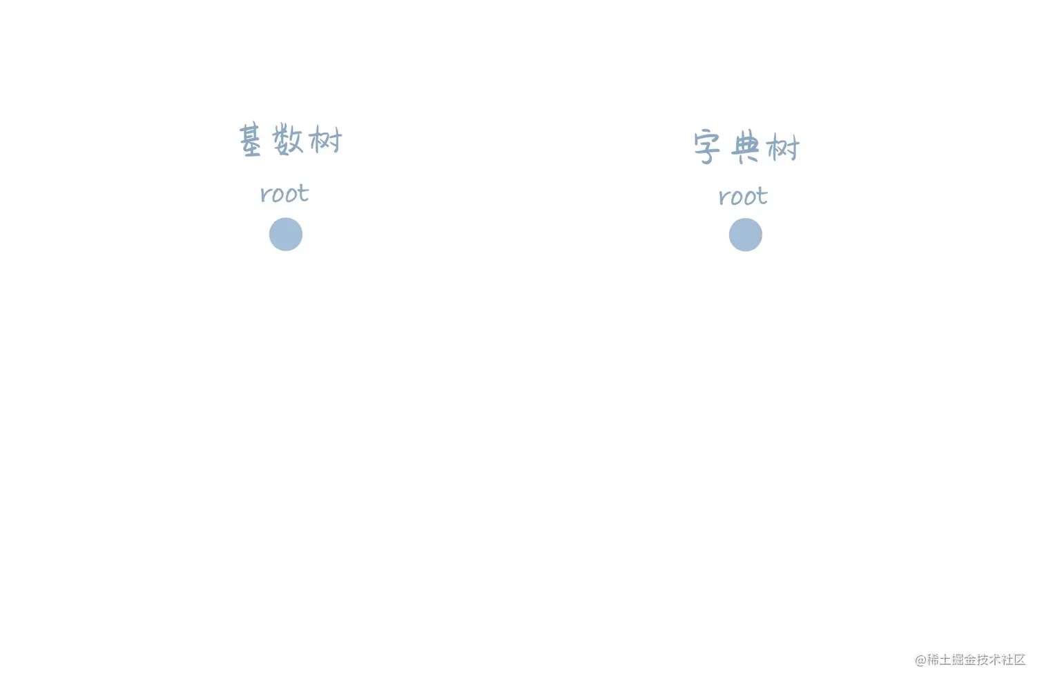 对于一颗空树的初始状态,基数树和字典树是一致的,只有 root 节点。
