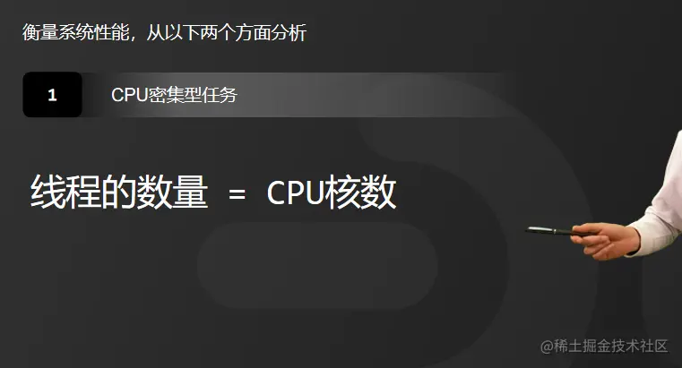 那么第1种情况,对于CPU密集型任务而言,理论上“线程的数量 = CPU核数”就是合适的。但是,在实际应用中的线程数量一般会设置为“CPU核数 + 1”。因为线程有可能因为内存页失效或其他原因导致阻塞,多设置一个线程可以保证CPU的利用率。\