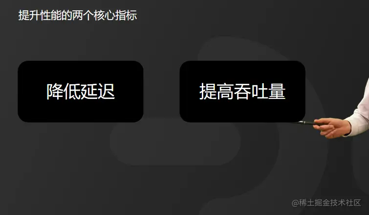 因此,提升性能最主要的目的就是要降低延迟,提高吞吐量。
