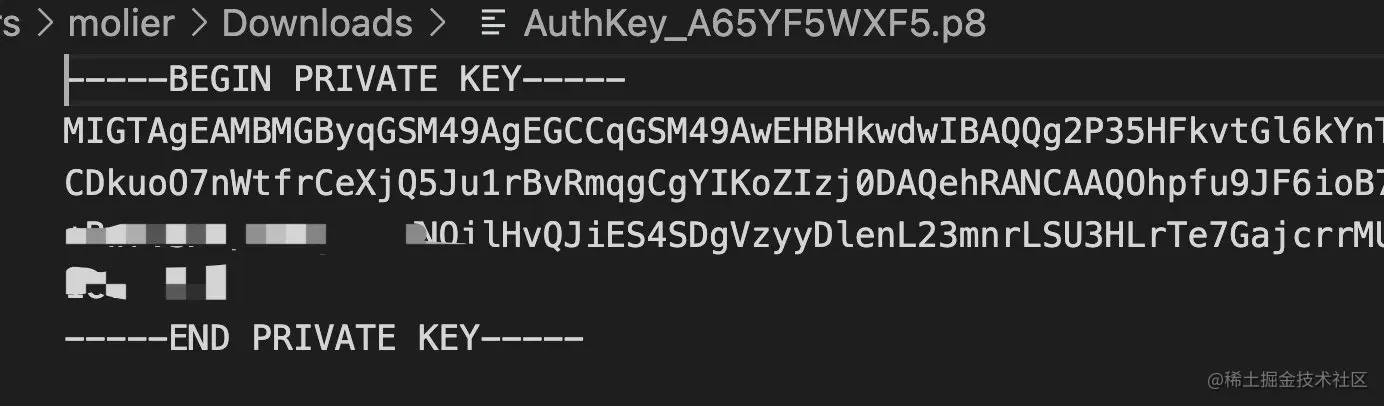 密钥文件格式为.p8实际是文本文件
