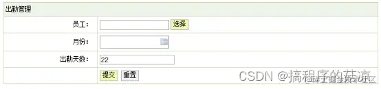 1.描述:输入月份和出勤天数点击提交按钮即可。
