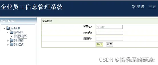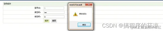 1.描述:输入用户名和用户的原有密码,输入新密码以后点击修改按钮即可修改密码成功。