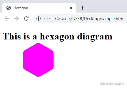 当我们在浏览器中运行该文件时,它将显示一个网页,在页面的左侧有一个标题和一个六边形的形状。
