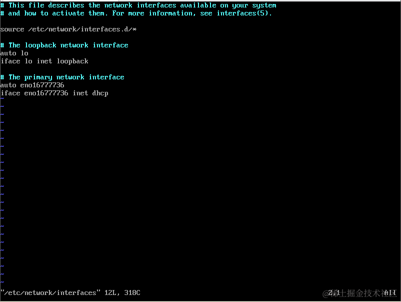 # vim /etc/network/interfaces //进入修改主机IP地址的文件