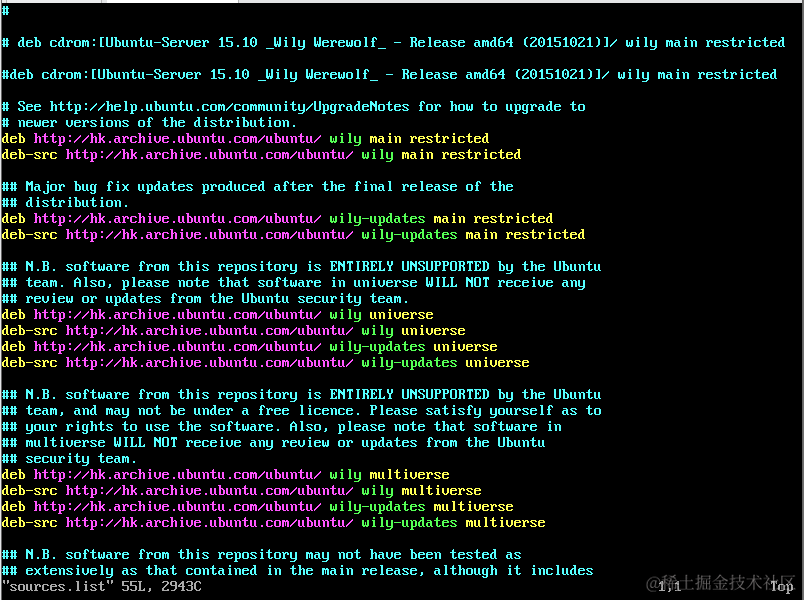 三、修改sources.list文件的内容(以下代码均是在上述目录下执行)
